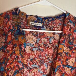 PAPARAZZI One Size Floral Viscose Tie Front Top Shawl Coverup Kimono Plus Size