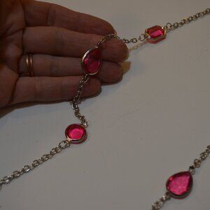 PAPARAZZI (R) Necklace Long Chain vary Shapes Pendants/Charms Silver Pink ~25'