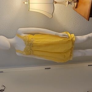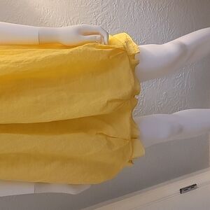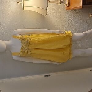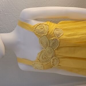 PAPAYA Mod Yellow Taffetta Metallic Rosette Bubble Blouson Tank Micro Dress