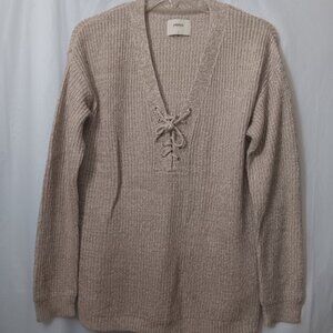 Size Large Women's - PAPAYA Tan Multi color Print long-sleeve pullover Functional Drawstring the Material is 100% Acrylic pre owned good condition