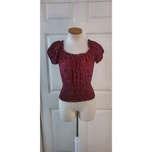 WOMENS PAPAYA BLOUSE EXCELLENT USED CONDITION POMS CAN BE WORN ON OR OFF SHOULDER SIZE MEDIUM