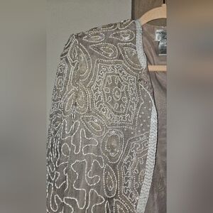 PAPELL BOUTIQUE Evening vintage beaded openfront jacket.Gray/silver. Size Medium