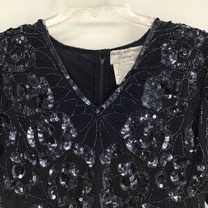 Stunning PAPELL silk sequins & beaded scalloped hem cocktail party top. Features 100% silk fabric, beaded & sequins throughout, round neckline, zips in back & fully lined.