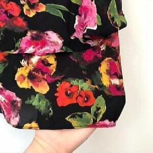 - black / pink / red / yellow / green floral flower flounce tiered tank blouse