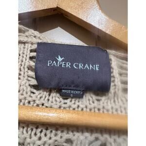 The PAPER CRANE Hooded Stripe Sweater in size Small is a stylish and comfortable sweater for women. Made of a blend of polyester and cotton, this knit sweater features a V-neckline, long sleeves, and a hood for added warmth.