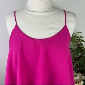 A Paper Crane two-tiered tank top. In the hot shade of Barbie pink! Camisole straps. Great paired with black or white