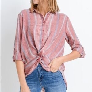Tags: fall, buttondown, twist front, burnout, long sleeve, tunic, high low, festival, outdoors