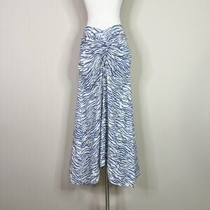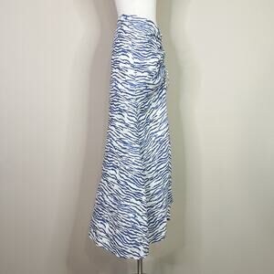 PAPER London | Sisi Linen Zebra Striped Blue Cream Scrunched Maxi Skirt 8
