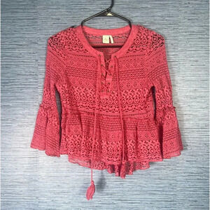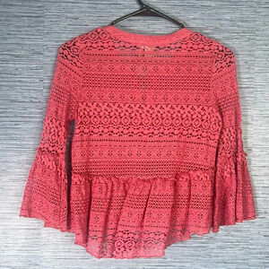 PAPER CRANE cropped pullover crocheted top with bell sleeves size Small