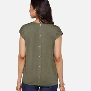PAPERMOON Women’s Olive sleeveless multi fabric blouse buttons up back
