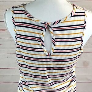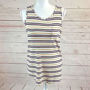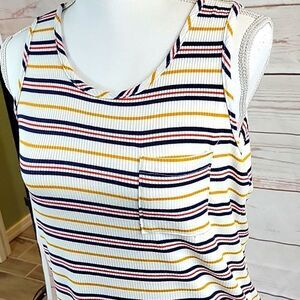 Scoop neck tank top with pocket on front. Worn once. Size medium. Red, white, blue and yellow stripes.