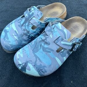 Papillio by Birkenstock 36 Size 5 Blue Multi Camo Clog Sandals. pre Owned but in Excellent Shape