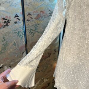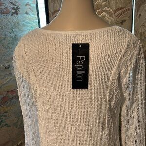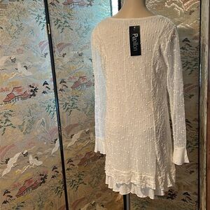 PAPILLION lined tunic knit floral texture block, size medium cream/white colored fun and dressy knit long sheere sleeve crewneck mid length beautiful dress ready for a party check up pics come with any questions