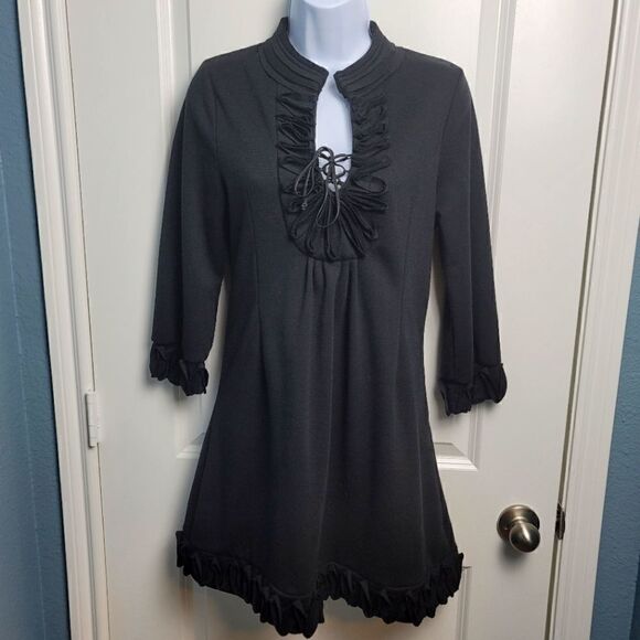 Papillion dress in black with a tie at the neck.Please look at all picture to see all wear and tear. There is slight pilling as shown in the pictures as well.