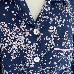 PAPINELLE Cotton/Silk Long Sleeve Pajama Set in Navy Cherry Blossom Print - M