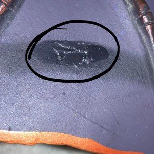 --Looks to be in great shape but there is a spot on one wing (circled on pics) that is bumpy/ rough. Not sure if this is some kind of emblem or a manufacturing defect.