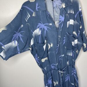 PARADISED Jumpsuit Women Small Blue Apres Beach Printed Lightweight Button Front