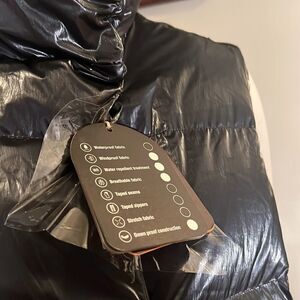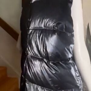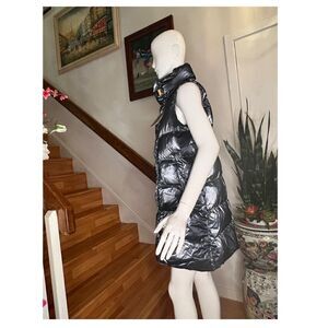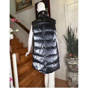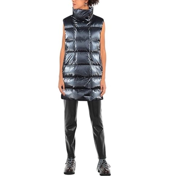 techno fabric, brand logo, contrasting applications, solid colour with appliqués, turtleneck, double-breasted, sleeveless, duck down filling, zipper closure, multipockets, contains non-textile parts of animal origin