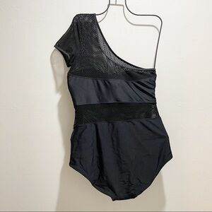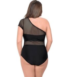PARAMOUR Womens Plus Size Black One Shoulder Mesh Detail One Piece Swimsuit 0X. Good Pre-owned condition. Gentle signs of wear. All measurements are approximate.