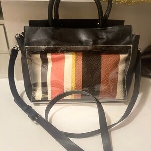 Beautiful colorful and unique bag clear bag inside is striped colorful bag with zipper.Adjustable straps in new conditions