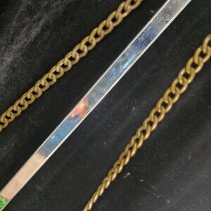 Magnetic snap closure on flap. One tiny interior pocket inside main compartment. Clean lining. 20" drop on chain.