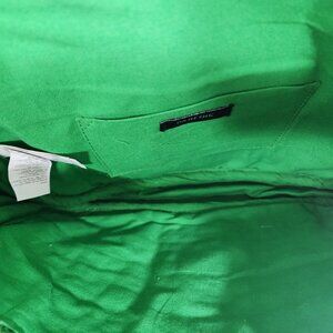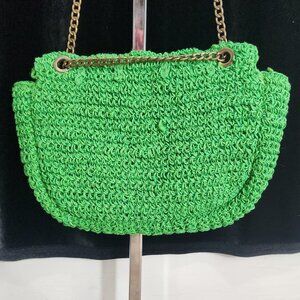 PARFOIS Green Jute Crocheted Crossbody Purse W/Antique Brass Chain Strap. ( Note we are unable to determine if hardware and chain are made of brass or are just brass colored). Bag measures 10"x7"x2"