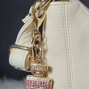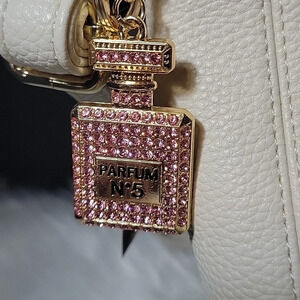 Parfum bottle Purse Charm Embellished with Pink Gemstones Purse Clip and Key Ring NWOT