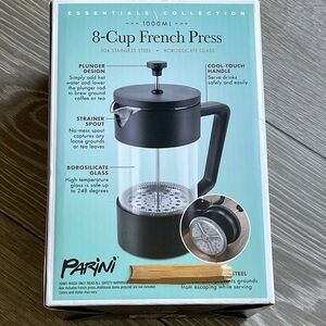 With a capacity of 8 cups, this French press is perfect for entertaining or for brewing a large batch of coffee or tea. Hand wash only to ensure the longevity of this product. The Parini French Press is a must-have for any coffee or tea lover who wants to enjoy a rich and flavorful brew.