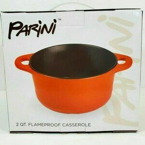 PARINI Orange 2 QT. Quart FLAMEPROOF CASSEROLE Dish with Lid New in Box