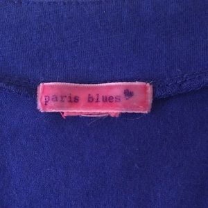 PARIS BLUES PURPLE V NECK T SHIRT. SIZE SMALL, MADE OF T SHIRT MATERIAL.