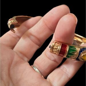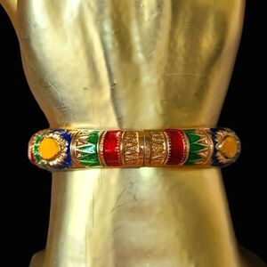 PARIS Bracelet Enameled Hammered Metal With Stones Cuff-Style