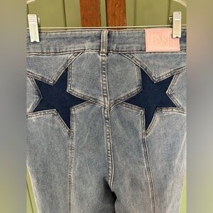 Discover the perfect blend of style and comfort with PARIS HILTON women's blue jeans. These jeans offer a sleek design and a flattering fit, ideal for any casual occasion. Stretch denim, high rise flare jeans with star back patch. Light blue. So cute and NWT!