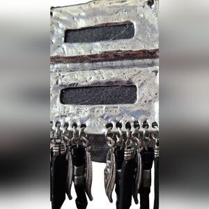 African Native American Nepalese tribe cord cording grommet stud ring studded fringe leather chunky bold long enamel