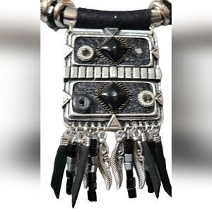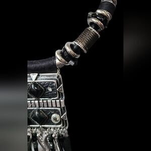 PARIS Necklace Tribal Ethnic Statement Black & Silver Solid Reversible 2…