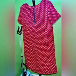 🆕 Paris Sunday Women's Blue Dress With A Red & Pink Scalloped Pattern-Sz Small