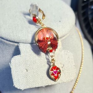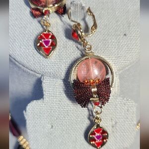 PARIS! Statement Necklace Earring Set 19" - 21" Feathers Chains Beads