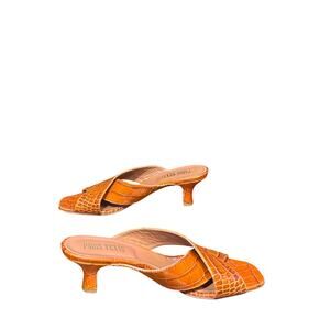 PARIS TEXAS New Croc Embossed Leather Mule Heel Sandals size 38.5