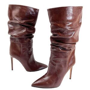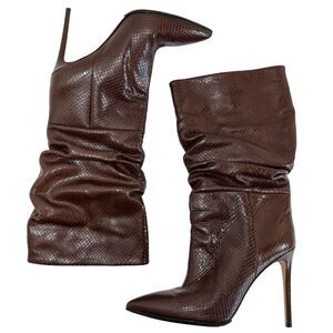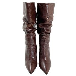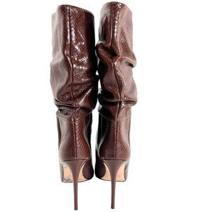 PARIS TEXAS Slouch Python-Embossed High Heel Boots in Cocoa Brown
