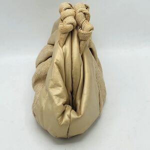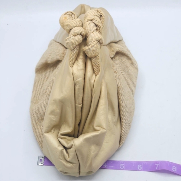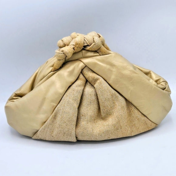 PARIS Vintage 80s Genuine Leather Gold Linen Metallic Woven Details Clutch