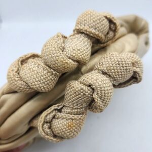 PARIS Vintage 80s Genuine Leather Gold Linen Metallic Woven Details Clutch.