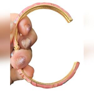 PARIS Bracelet Enameled Hammered Metal Hinge Pink 7"