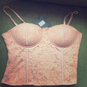 Beautiful, high quality, European lace bustier, brand new from a darling little boutique on the Hudson River. This lovely European piece runs small, equivalent to a US size 6. The back is adjustable, so it could accommodate someone medium, as well. This is beautiful to wear under a special top or is finely finished to wear on its own with skirt, jeans or shorts. Would look gorgeous under the cream top I have listed.
