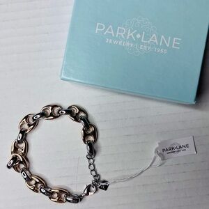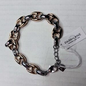 Details: The Park Lane "TURBO" chain link bracelet boasts a mixed metal interlocking chain, combining high polished gold and silver for an industrial, sleek look. It comes in a signature Park Lane box, making it a perfect gift. With a length of approximately 8", it also features a 1" extension and is secured with a lobster claw clasp and signature PL metal tag. Lead and nickel free, this bracelet is also hypoallergenic.