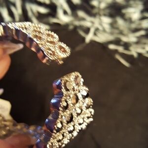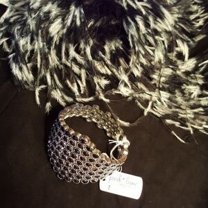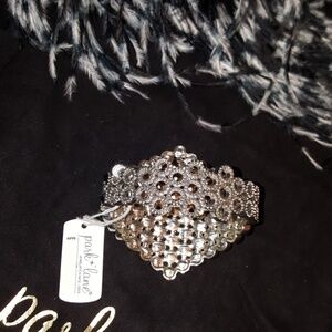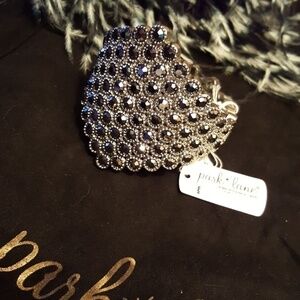 Hinged silver tone bracelet embellished with hematite. Austrian crystals. NWT.