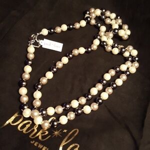 Park Lane hilo nacklace. 48"inches long. White, silver and hematite glass pears. NWT.