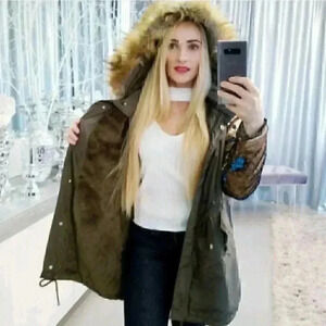 PARKA WITH SEQUIN SLEEVES, Faux FUR TRIMMED HOODIE AND FAUX FUR LINING INSIDE