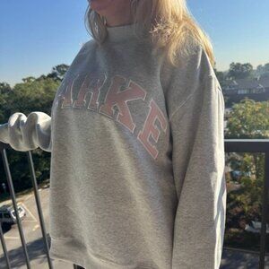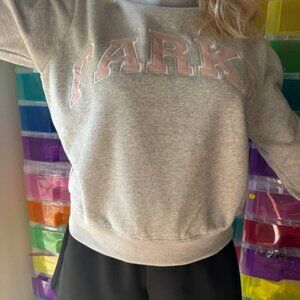 PARKE Exclusive Grey Varsity Mock Neck Sweatshirt with Pink Logo S-M