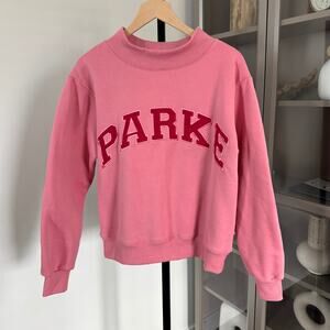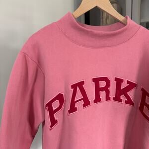 PARKE Varsity Pink Red Logo Mockneck Sweatshirt S/M NEW Valentines Day Pullover