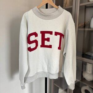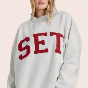 SET X PARKE REVERSIBLE VARSITY WHITE GREY MOCK NECK SWEATSHIRT