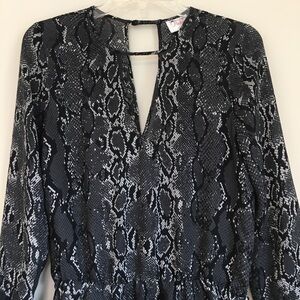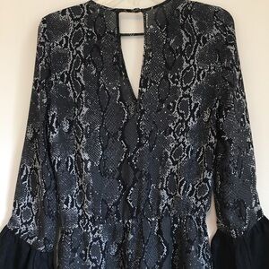 PARKER 100% Silk Snake Print Long Bell Sleeve V-neck Peplum Hem Blouse